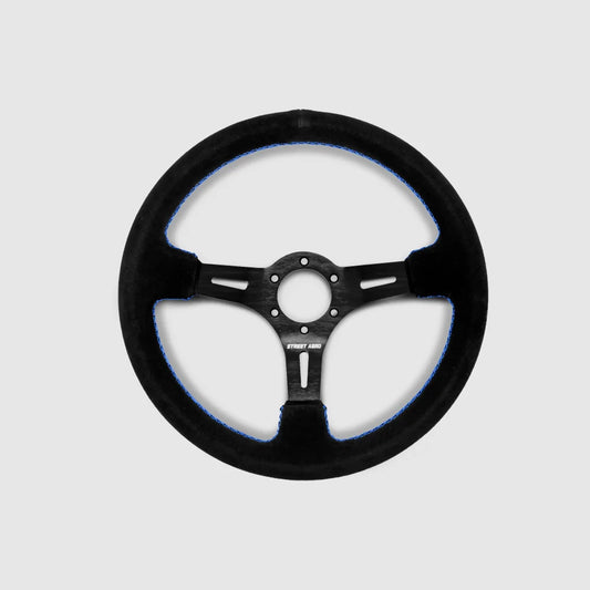 Steering Wheel Suede Brushed Aluminum - Blue Stitched