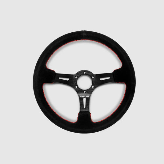 Steering Wheel Suede Brushed Aluminum - Red Stitched